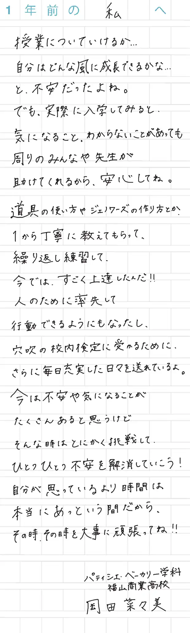 入学前に抱く不安を当時の自分に向けた「手紙」という形で、在学生よりみなさんへメッセージ。