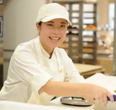 自分が作ったお菓子がお店に並んで買ってもらえることが、この仕事のやりがいです。時々、直接「美味しかった」と言ってくださる方もおられ、とても喜びを感じます。アナブキでは洋菓子だけでなく、和菓子や製パン、カフェなど幅広く学ぶことができ、働き始めてから必要になる基礎も身につけることができたため、学んだことがとても役に立っています。