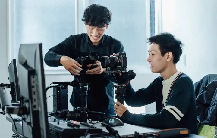 ENGカメラや一眼レフ、アクションカメラなど、動画の制作に必要な機材の知識を習得でき、将来多くの現場で役立てられます。