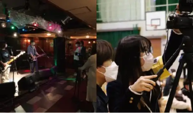 外部授業では実際に音響機材や配信環境のセッティングから撮影を行います。ライブハウスや幼稚園などの様々な現場で授業を行い、目まぐるしく変化するトレンドや様々な発信方法などをコンテンツ制作の現場を通して実践的に学びます。