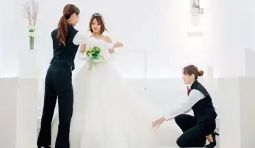 ドレスなどブライダル衣装の知識は大切。ウェディングドレス、カラードレス、タキシードなど色々な衣装を揃えています。