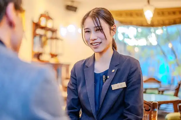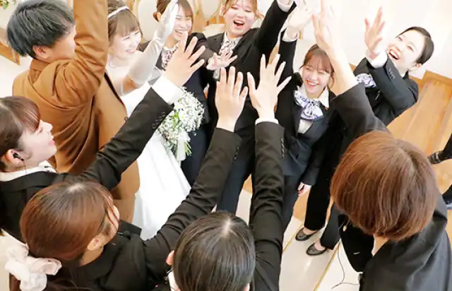世の中の仕事には、一人ひとりが黙々とやるタイプのものもあれば、チームワークが必要なタイプもあります。ブライダル・ホテルの仕事は協力しないと現場が回りません。そのため、担当業務の枠を超えて連携を取り合い業務にあたります。職場の人と仲良く働きたい、チームで仕事をするのが好き、という人にとっては楽しく働ける職場と言えます。お客様への感謝の気持ちと、お客様からの感謝を受け止める気持ちを持つことで、やりがいを感じることができる仕事です。ぜひ、ここでサービスのプロを一緒にめざしましょう。