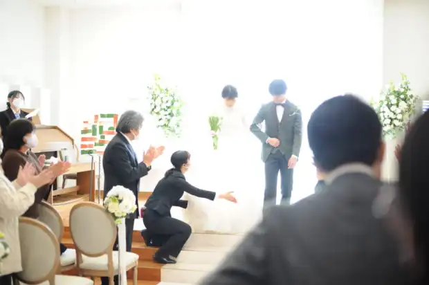 新郎新婦さんとの衣装やお料理、会場やテーブルを飾る小物の打ち合わせなどの企画から、当日の式の運営やサービスまですべてのステップに携わります。