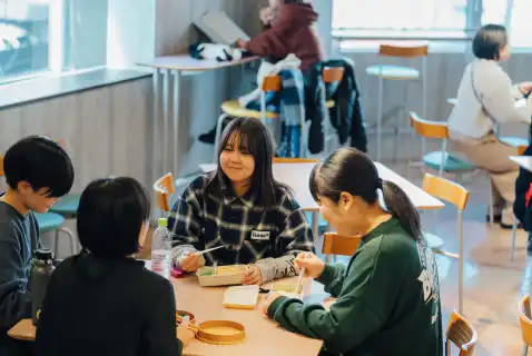 お昼休憩はクラスの友だちと一緒に食べています。コンビニで買ったりすることもありますが、この日はみんなお弁当。みんなでお弁当のおかずを披露し合ったりしています(笑)