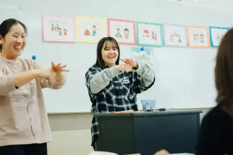 A.まだ明確ではないですが、子どもだけでなく、保護者の方々とも近い距離でコミュニケーションを取りながら子育てをサポートする仕事をしたいです。また保育現場に限らず、人を育てることに関わる仕事も視野に入れて、幅広い分野で活躍できることをめざしています。