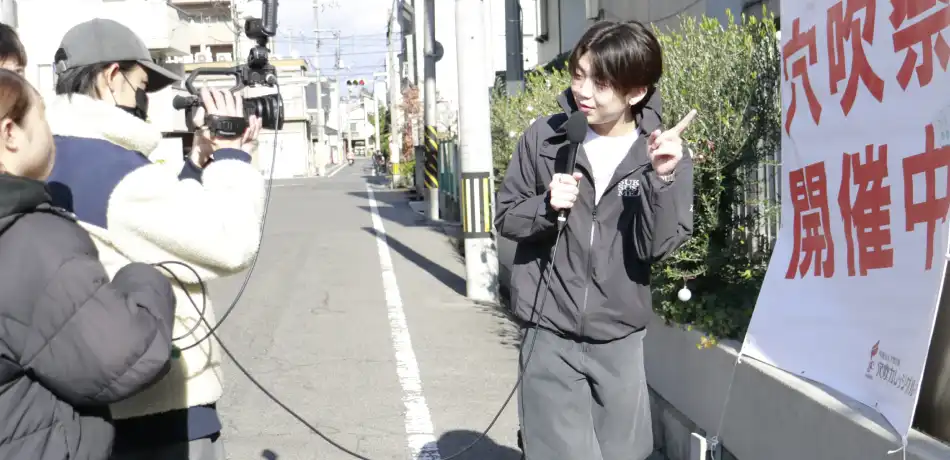 InstagramやTikTokでの発信はもちろん、ネット動画クリエイター学科の「穴吹学園ニュース」に出演したり、メディア制作の裏側にも潜入。12月の「穴吹祭」ではレポーターになりきって模擬店へ突撃インタビュー!