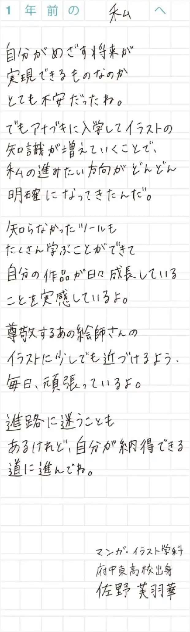 入学前に抱く不安を当時の自分に向けた「手紙」という形で、在学生よりみなさんへメッセージ。