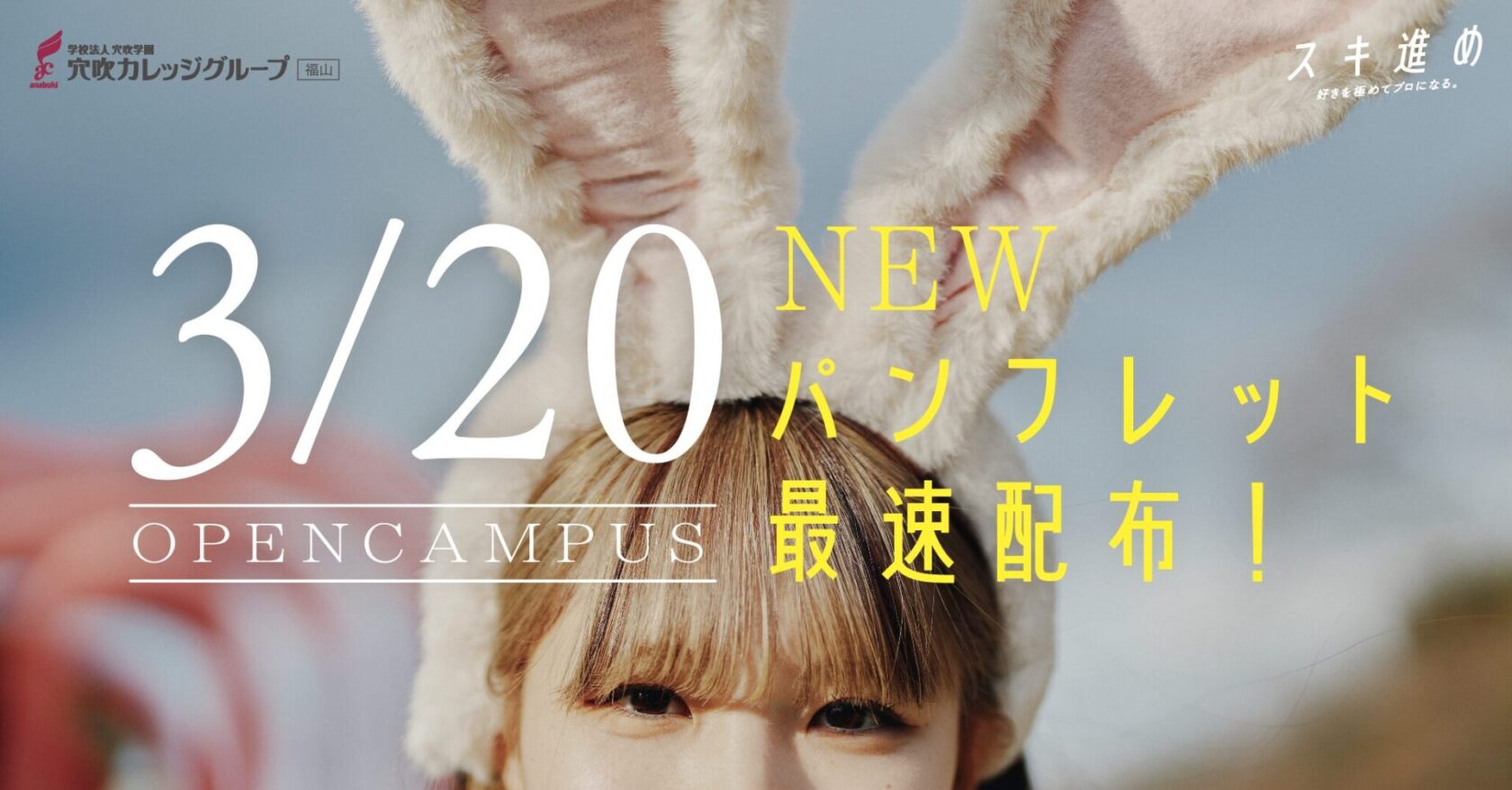 3月20日(金・祝)は、穴吹カレッジグループ福山の新しいパンフレットが最速配布!新たなコンテンツや新たなコースも!?この1冊であなたの進路活動が益々楽しくなる!必ず参加してNEWパンフレットを最速でGETしよう!