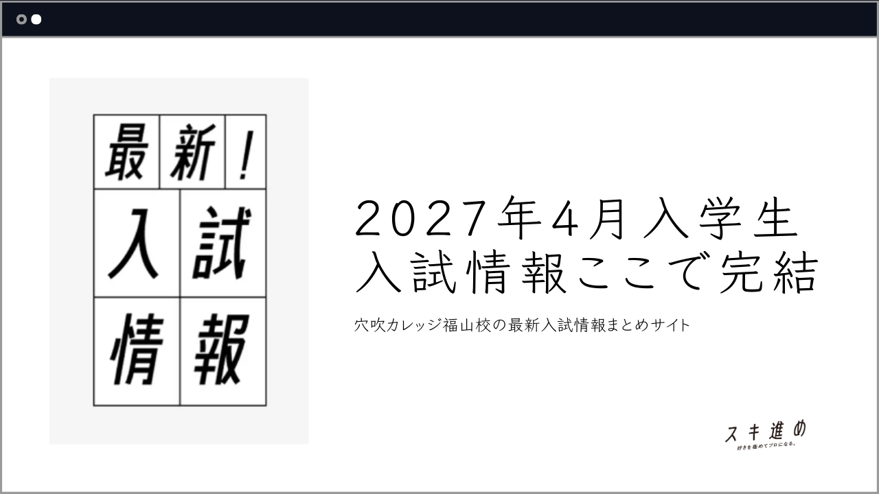 2026年4月入学生募集は2026/3/12を持って終了します。2027年4月入学生向け入試情報を掲載しています。