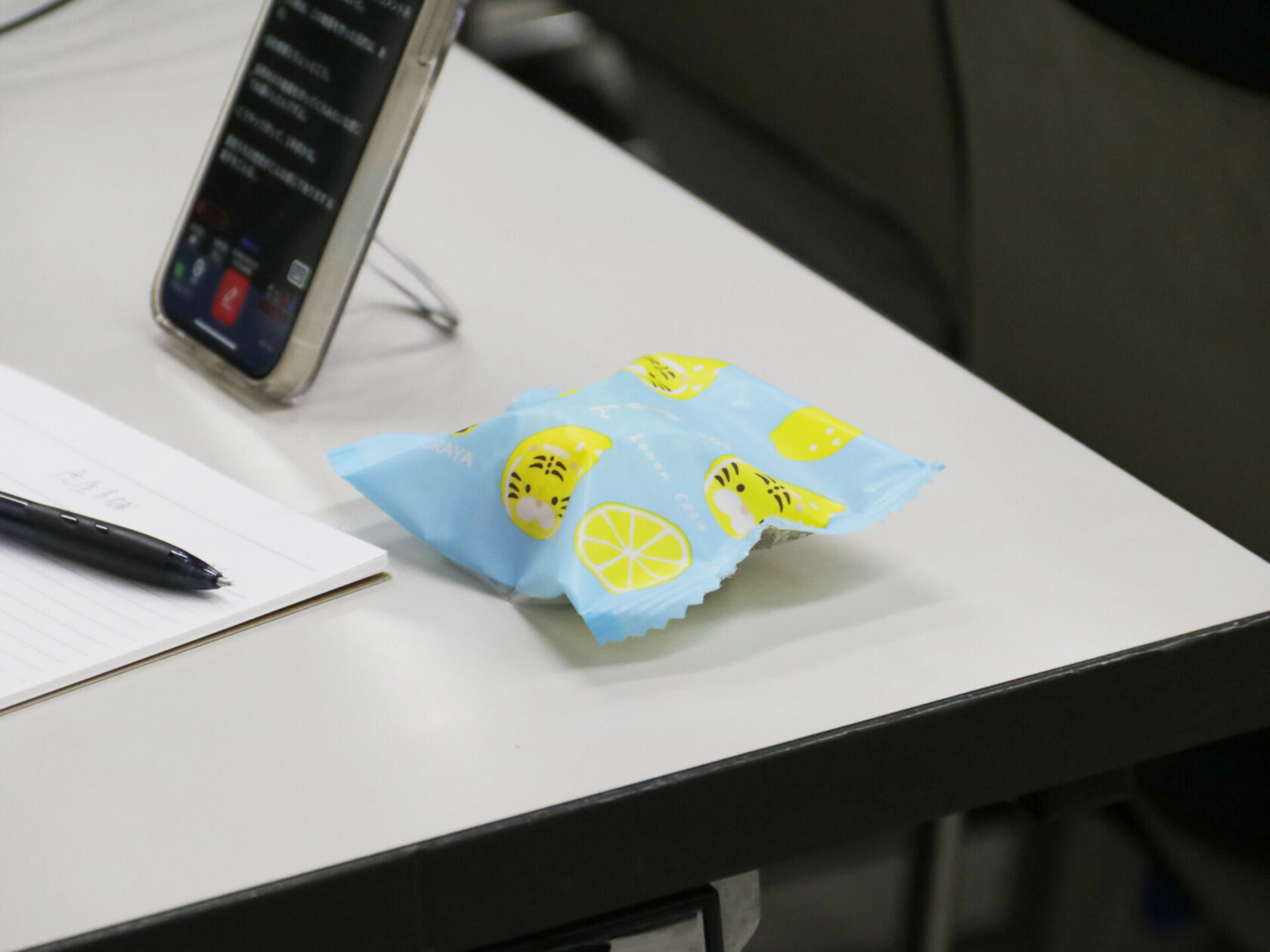 なんと実際の商品までいただきました!学生のためにありがとうございます!(お言葉に甘えてさっそく食べる学生)