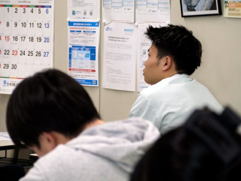 学生たちは真剣な表情でメモを取り、配布資料を読み込みます。