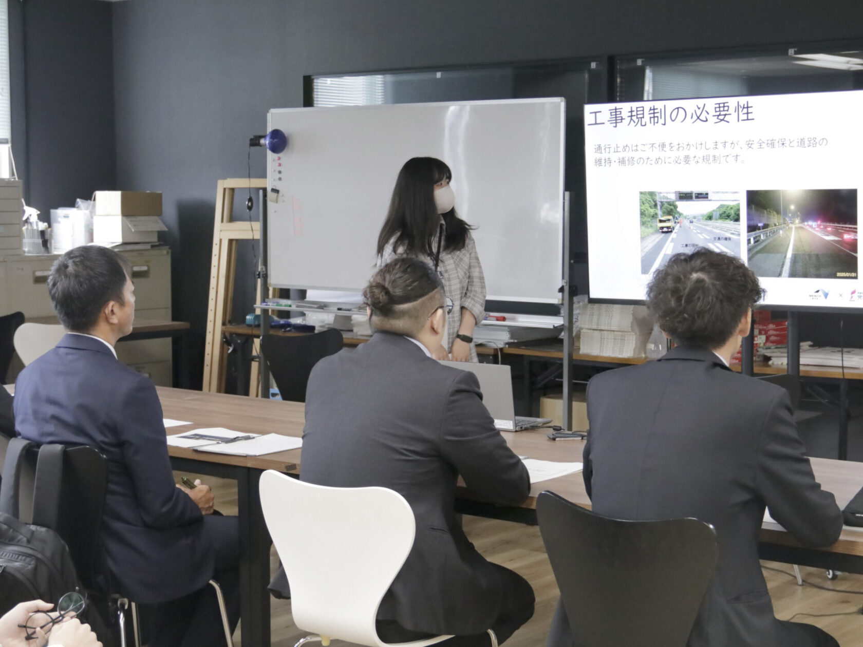 例年、コラボさせていただいております、NEXCO西日本様との産学連携が進行中!今回は2年生に「夜間工事・交通規制の啓発動画」の制作をご依頼いただきました!そして本日、NEXCO西日本様にご来校いただき、直接学生がプレゼンテーションを行いました。