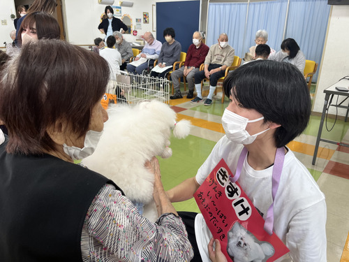 今回は福山市蔵王にある「ケアハウス蔵王すみれケア」のデイサービスセンターで、2回目のアニマルセラピーを開催しました!