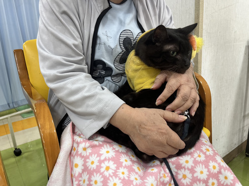最初はちょっと怖いなあとおっしゃっていた方も、他の方の触れ合う様子を見て最後にはお膝の上で撫でられていました。