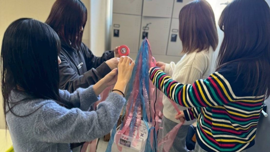 教室では、体験ブースの大きな看板や、わんちゃん用の可愛い撮影スポットを制作中。