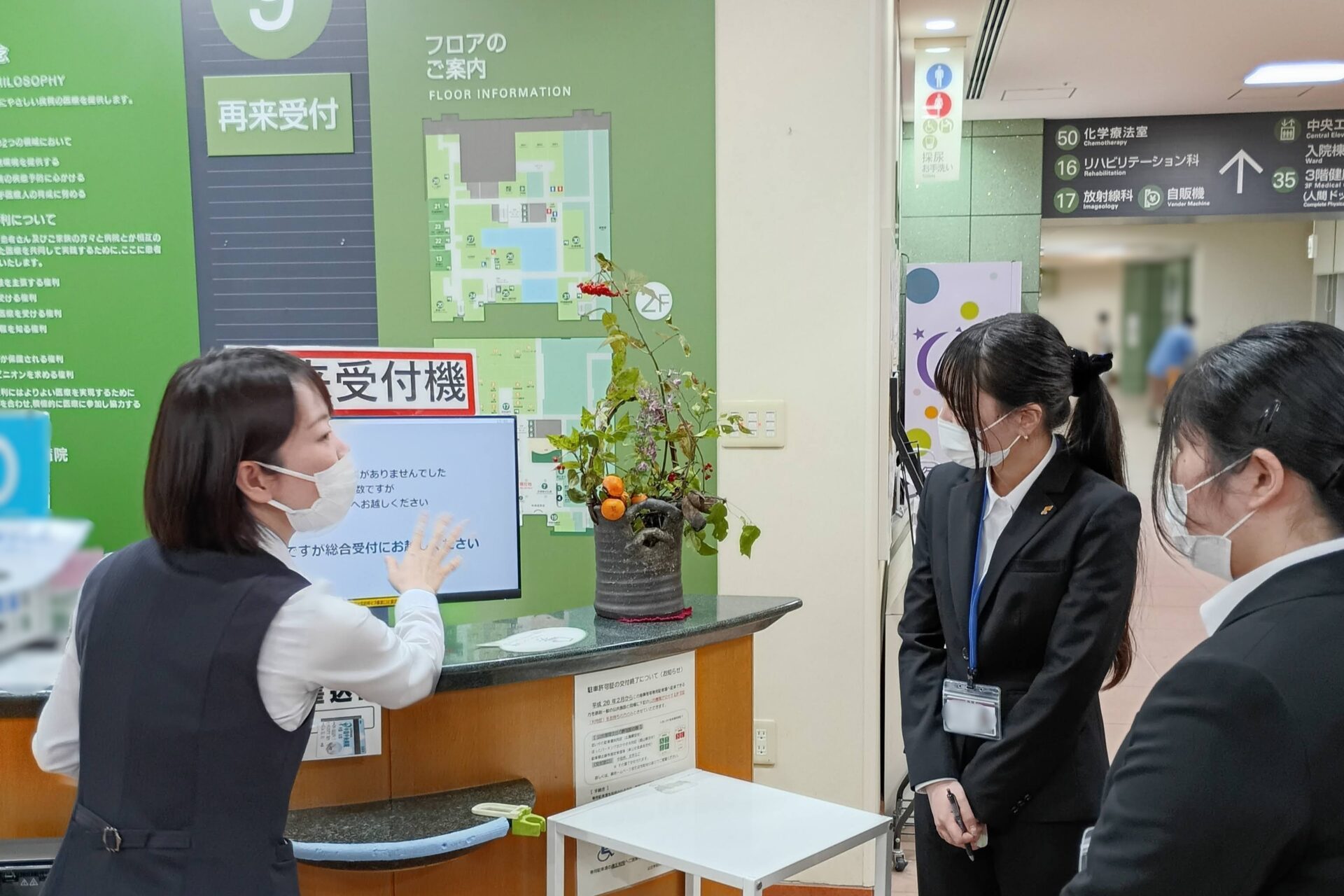 学生は4班に分かれ、病院内の主要な部門を見学。教科書や資料で知識として得ていた「受付」「外来」「病棟」といった場所で、実際に医療事務・クラークがどのような動きをしているのか、患者様の流れや現場の緊張感を肌で感じ取りました。