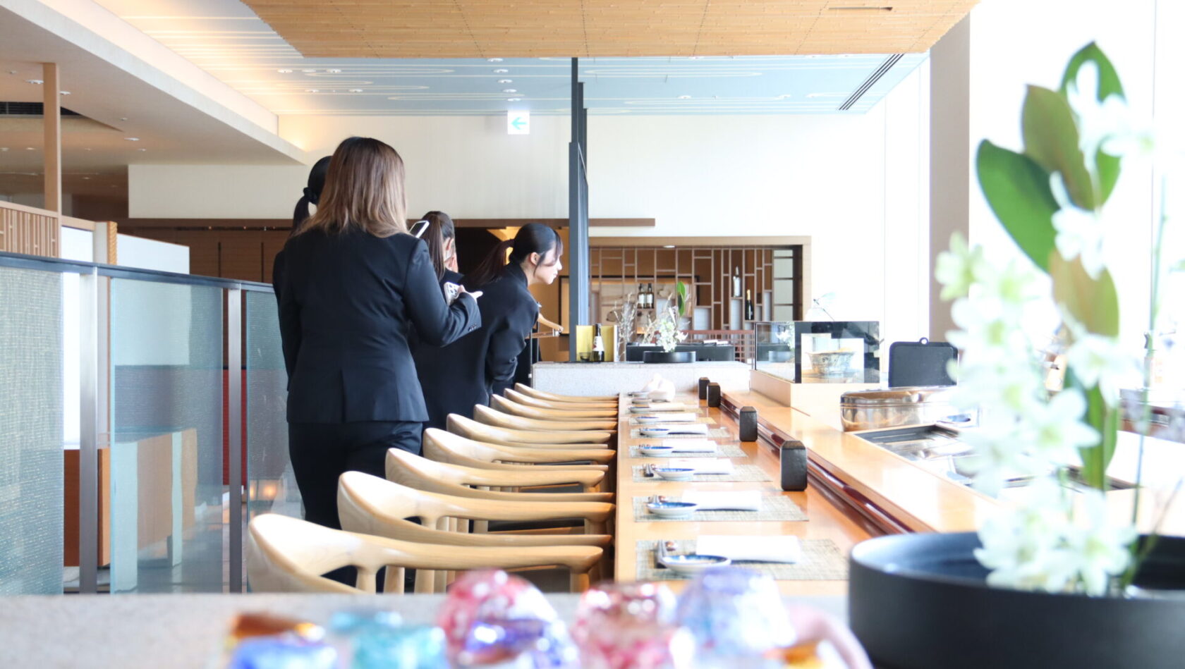 料理を楽しみながら、料理の配置やスタッフの方のスマートで細やかなサービスを、お客様の視点で体験!この体験こそが、サービスのクオリティを体感的に理解し、自身の学びに活かすための重要な経験となりました。