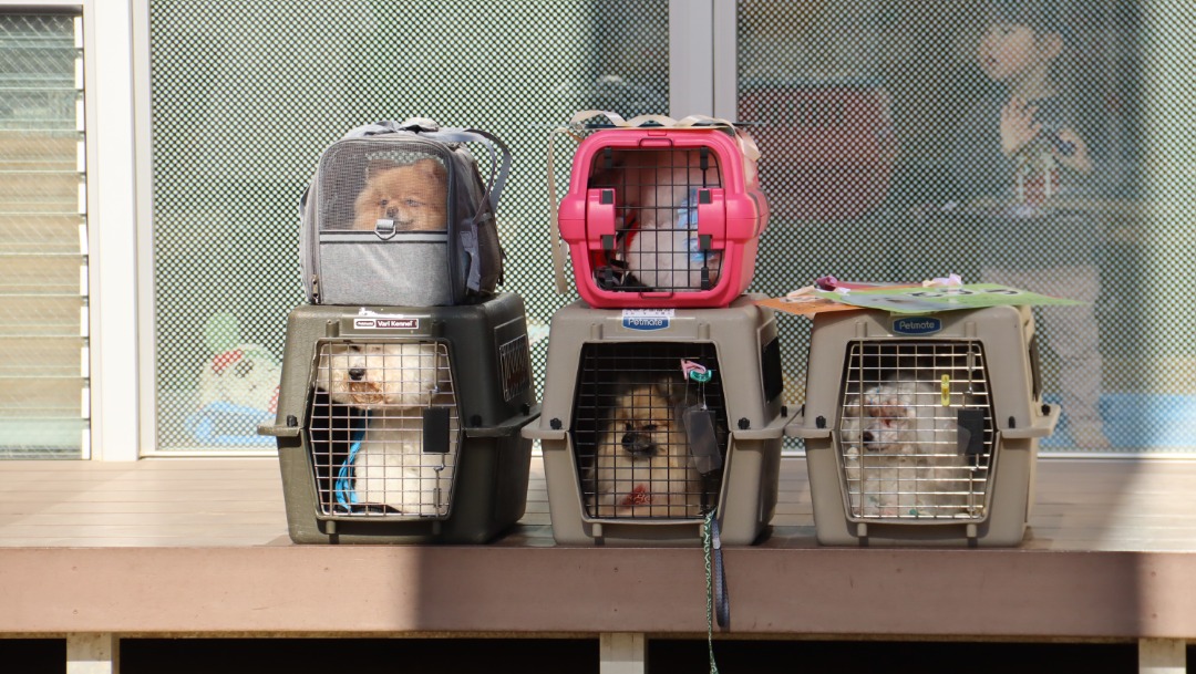 「大きな声を出さないでね」「触るときは、わんちゃん流のご挨拶(にぎりこぶしを嗅いでもらう)をしてね」