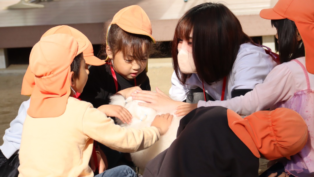 動物看護総合学科セラピーコース3年生が、学校のすぐ近くにある「こども園ふかつ」へお邪魔しました。