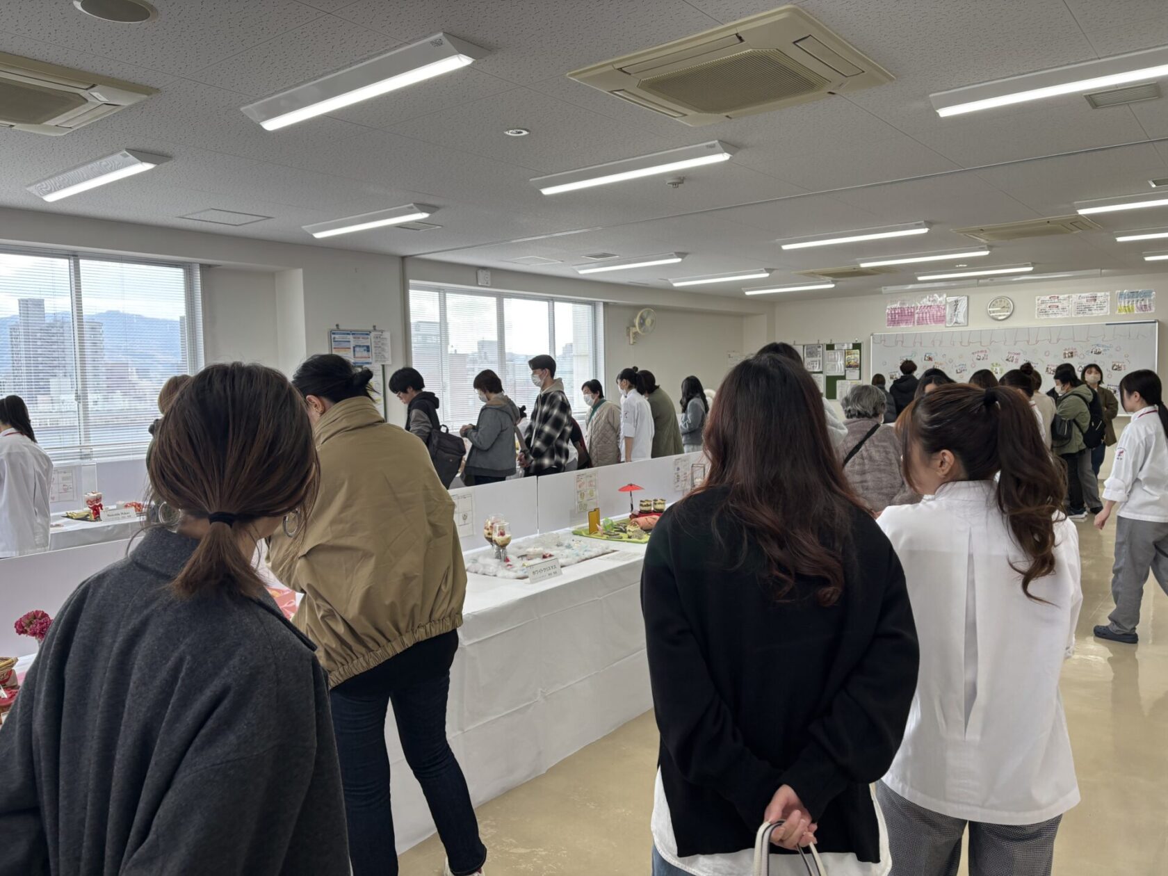 「パティシエ・ベーカリー学科」の学びの集大成「卒業製菓展示会」も同時に開催です。会場に一歩足を踏み入れると、まるで高級ホテルのデザートビュッフェのような、鮮やかなデザートがテーブルを彩る光景が目に飛び込んできます。
