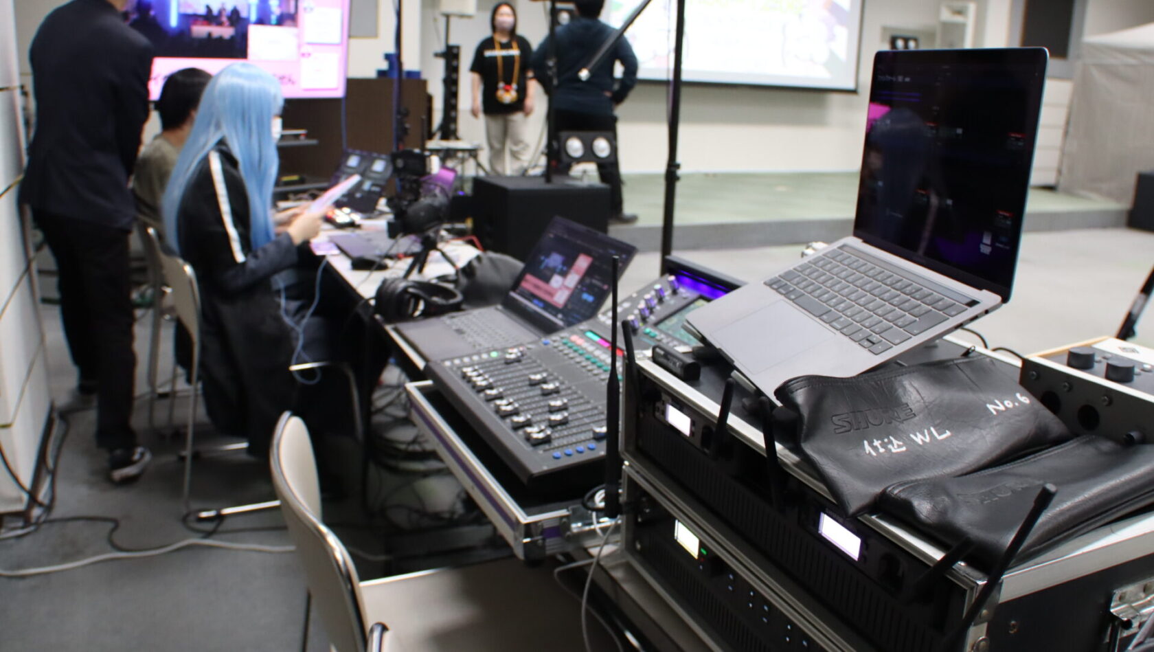 今年もネット動画クリエイター学科の学生たちによる生配信も行われ、メディアホールには本格機材がずらり…!