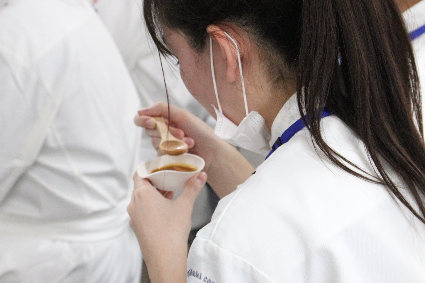 「ハリッサ」という地中海生まれのピリ辛調味料をアクセントに使い、カリフラワーをダイナミックに焼き上げる技法に、学生たちは釘付け。多様な食のスタイルに応えることが、これからの料理人に求められる大切なスキルであることを学びました。