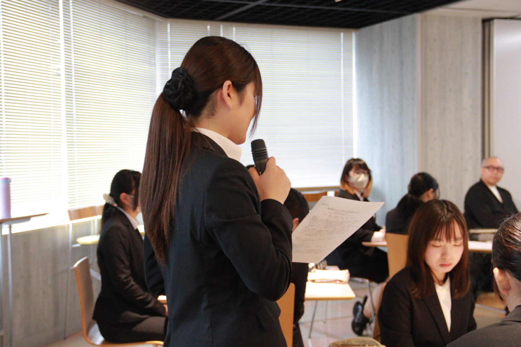 学生たちは自分の担当箇所をすべて暗記し、手元の原稿ではなく、しっかりと聞いている人の目を見て言葉を届けます。もし言い間違えても、落ち着いて「失礼いたしました」と添える――。