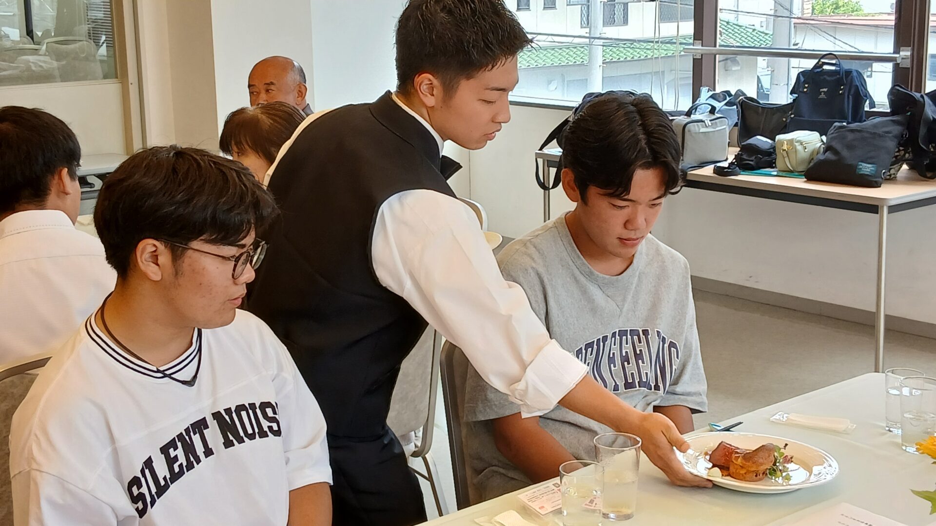 ドリンクなどのサービスの担当ももちろん、ホスピタリティを学んだ学生スタッフたち。