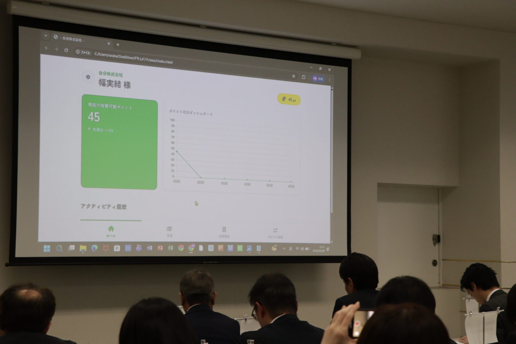 実はITビジネス学科で普段授業で学んでいるのはVBAやHTMLといった基礎的な開発スキルが中心です。 でも今回の発表会で学生たちがビジネスモデルとして提示した解決策は、その枠を大きく超えるものでした。