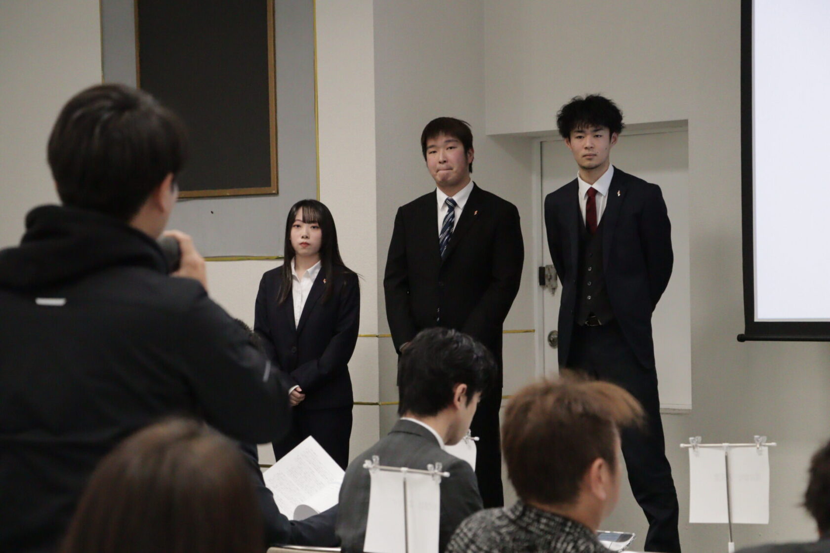 この卒業研究発表会には地元の有力企業13社の方々が審査員として参加、自分たちの「スキ」が社会でどこまで通じるのか、「プロの目」でアドバイスを頂く貴重な機会となりました。