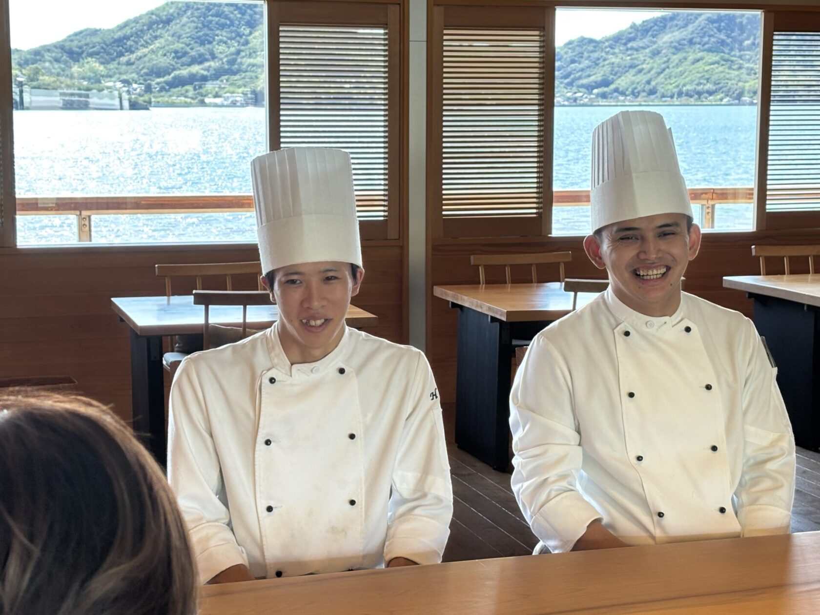 お二人の話を聞いて、改めて「ガンツウ」という特別な環境で、プロとして大きく成長している姿を見ることができ、嬉しく思いました。特に、船上での作業への工夫や、「後輩からも先輩からも慕われる料理人」を目標に技術を磨く姿勢は、料理の世界をめざす皆さんにとって大きな刺激になるはずです。これからも瀬戸内の海で、お客様に最高の「食」の体験を届けてくれることを応援しています!