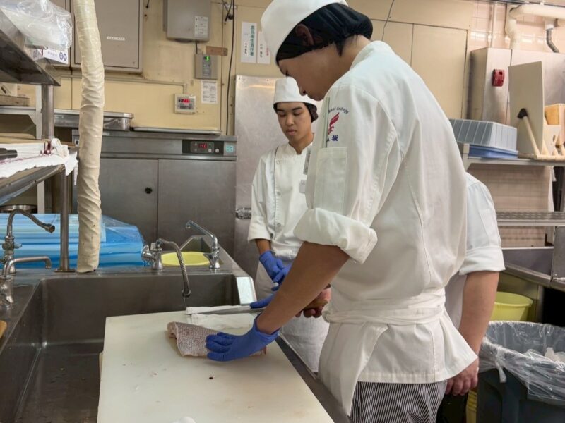 現場では、一つの作業に正確さと手際の良さが求められること。また魚をさばく作業には、包丁の入れ方、角度、力加減など様々な技術が必要だと痛感しました。今後の実習でも意識をして、取り組めるようになると思います。