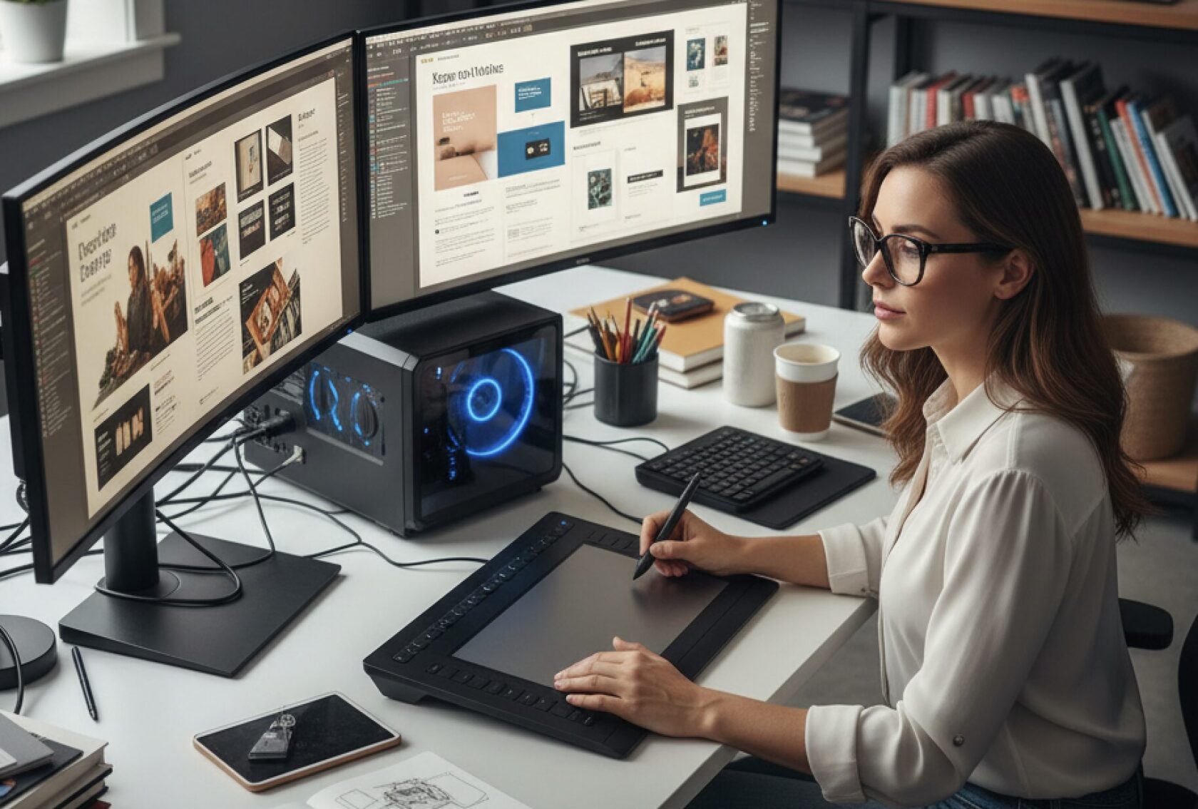 紙媒体からWeb媒体へのデザインに応用する例も多く、HTMLやCSSなどのコーディング技術を追加で習得することでWebデザイナーを目指す人も増えています。実務で得たレイアウト力や視覚表現の知識は、グラフィックデザイン全般にも役立つため、確実なスキルシフトが可能です。